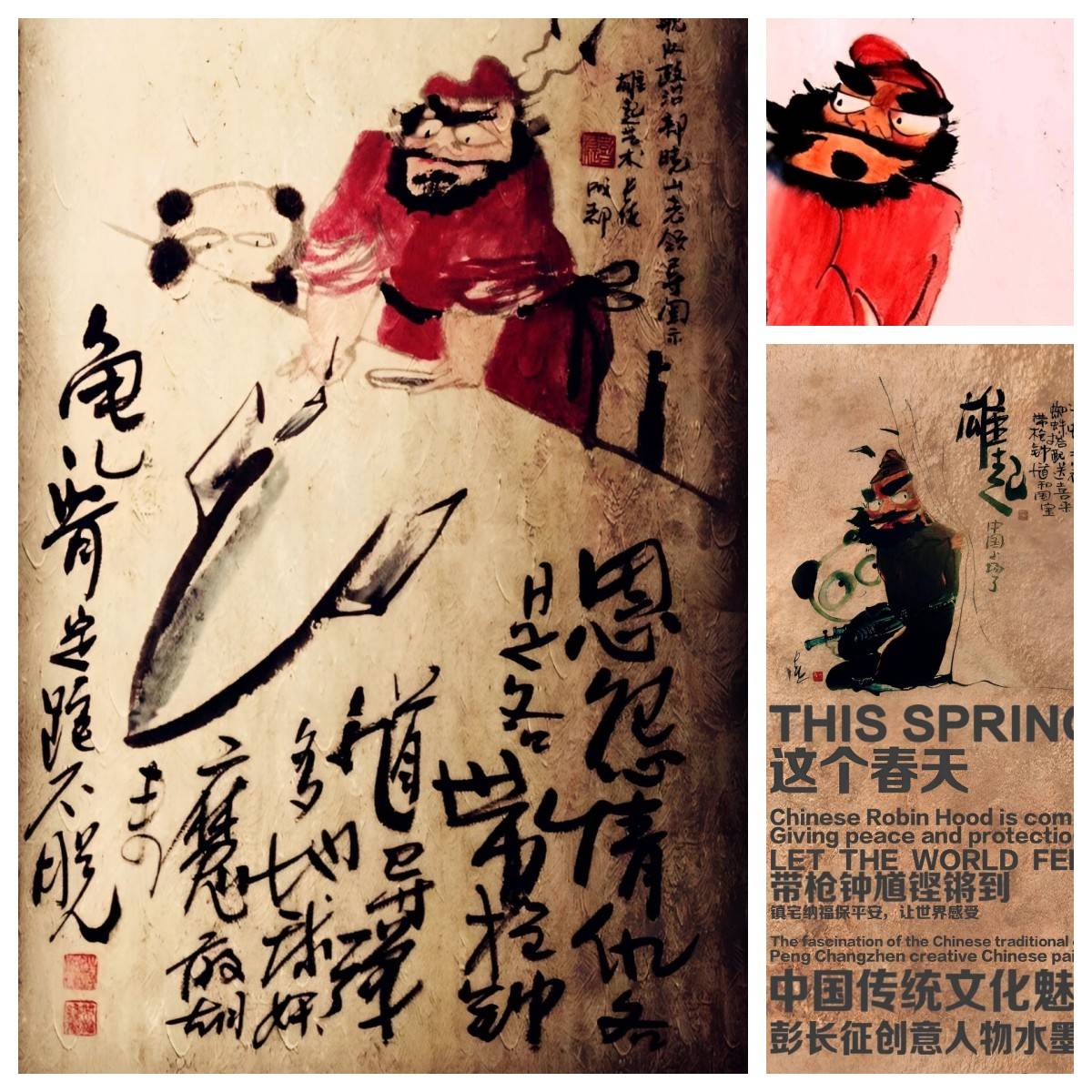 自2012年开始,彭长征在中国创意人物水墨画系列作品中,开创性的让《带枪钟道》《雄起关公》与熊猫搭档“出镜”,表达“进士蝙蝠意福到,蜘蛛搭配送喜来,带枪钟馗与国宝,雄起中国上场了!”的全新创意。熊猫在中国代表四川,在世界象征中国,“熊”“雄”谐音喻意“雄起”,这是传统的雄起;也是中国的雄起,这些作品让世界看到大熊猫背后的中国文化,这个创意已被众多中国艺术家广泛借鉴、跟进及多类场景运用。